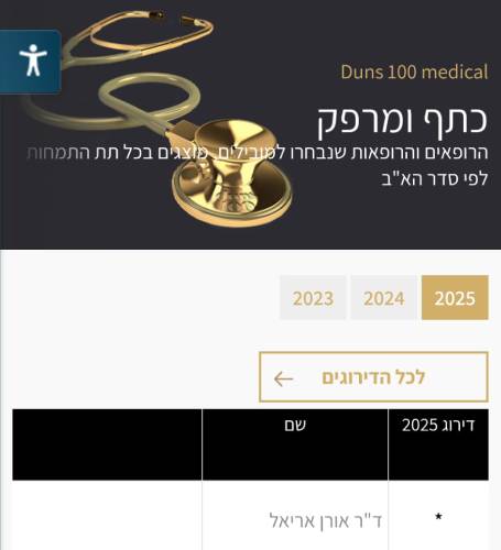 מופיע ברשימת הרופאים המובילים במדריך DUNS 2025 שלוש שנים ברציפות